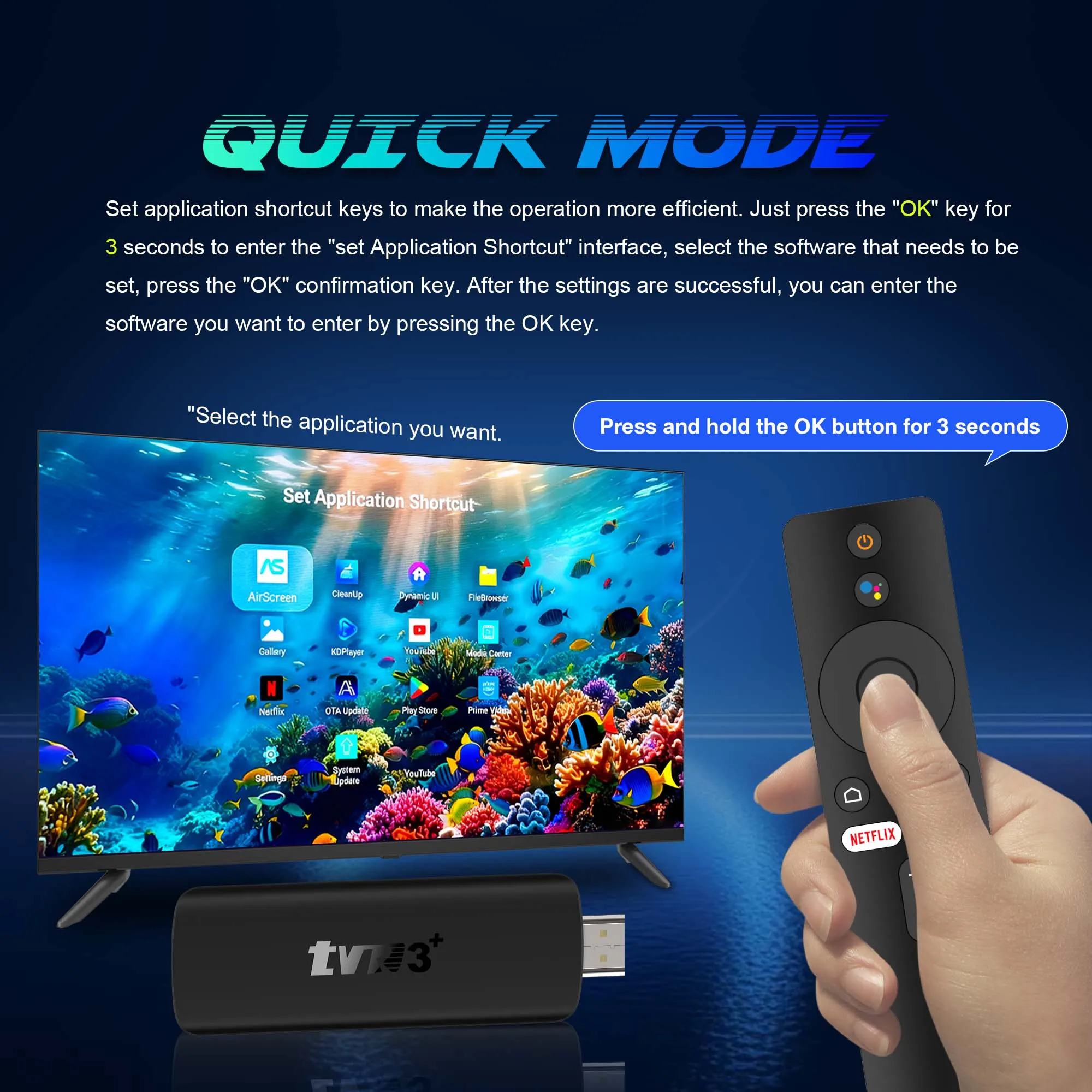 The Android TV Stick is equipped with the latest Android TV 14.0 operating system, ensures extensive compatibility, allowing you to easily install many of your favorite applications