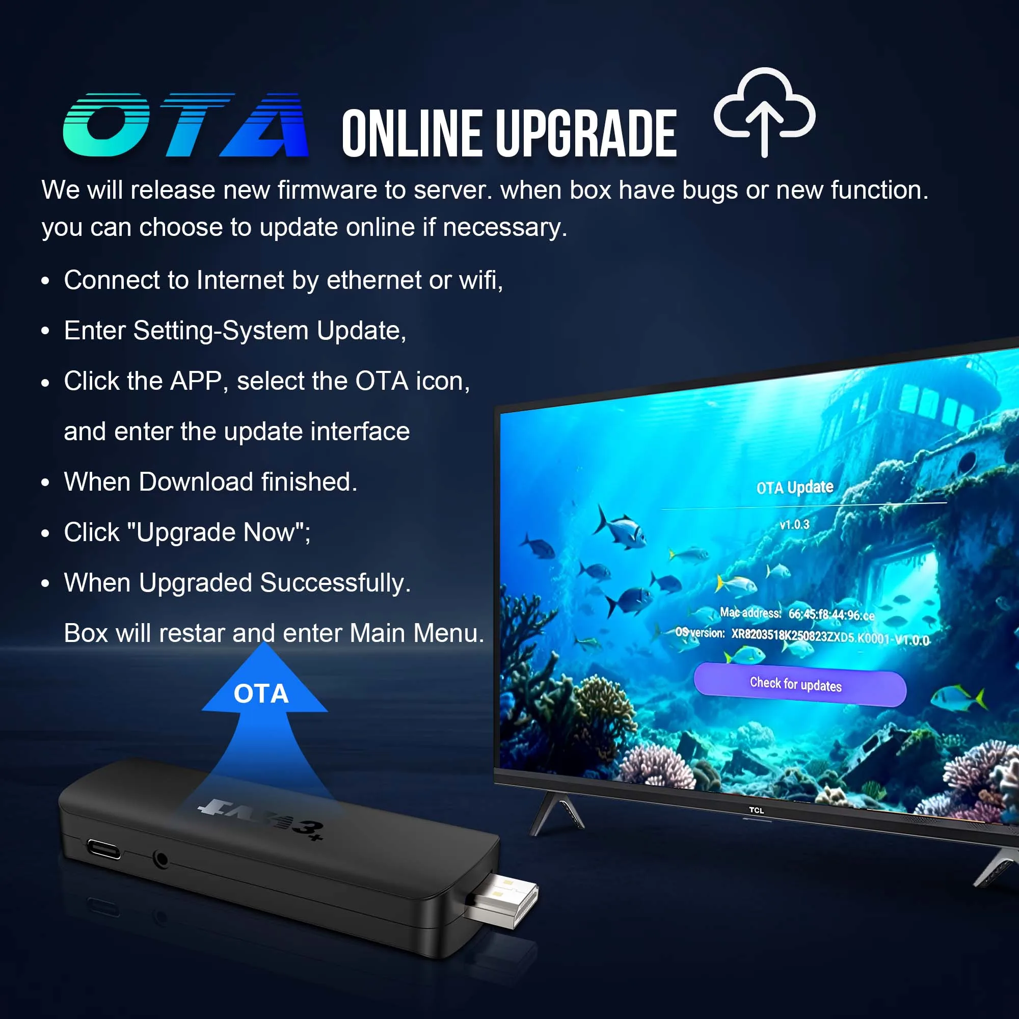 OTA online update: when the box has a bug or new features, you can choose to update it online if necessary