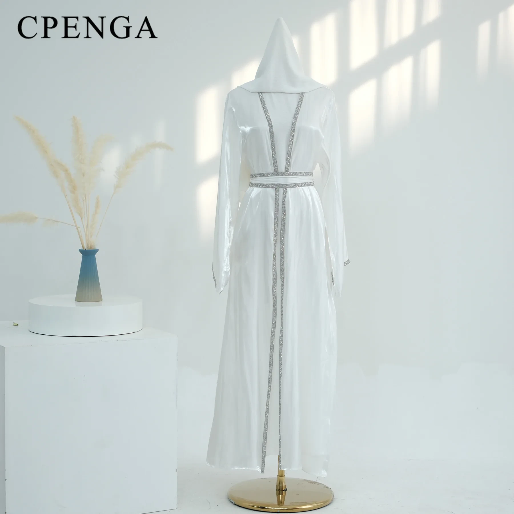 The coat is great quality Silky shiny fabric,like organza , a little see through. It's very light.