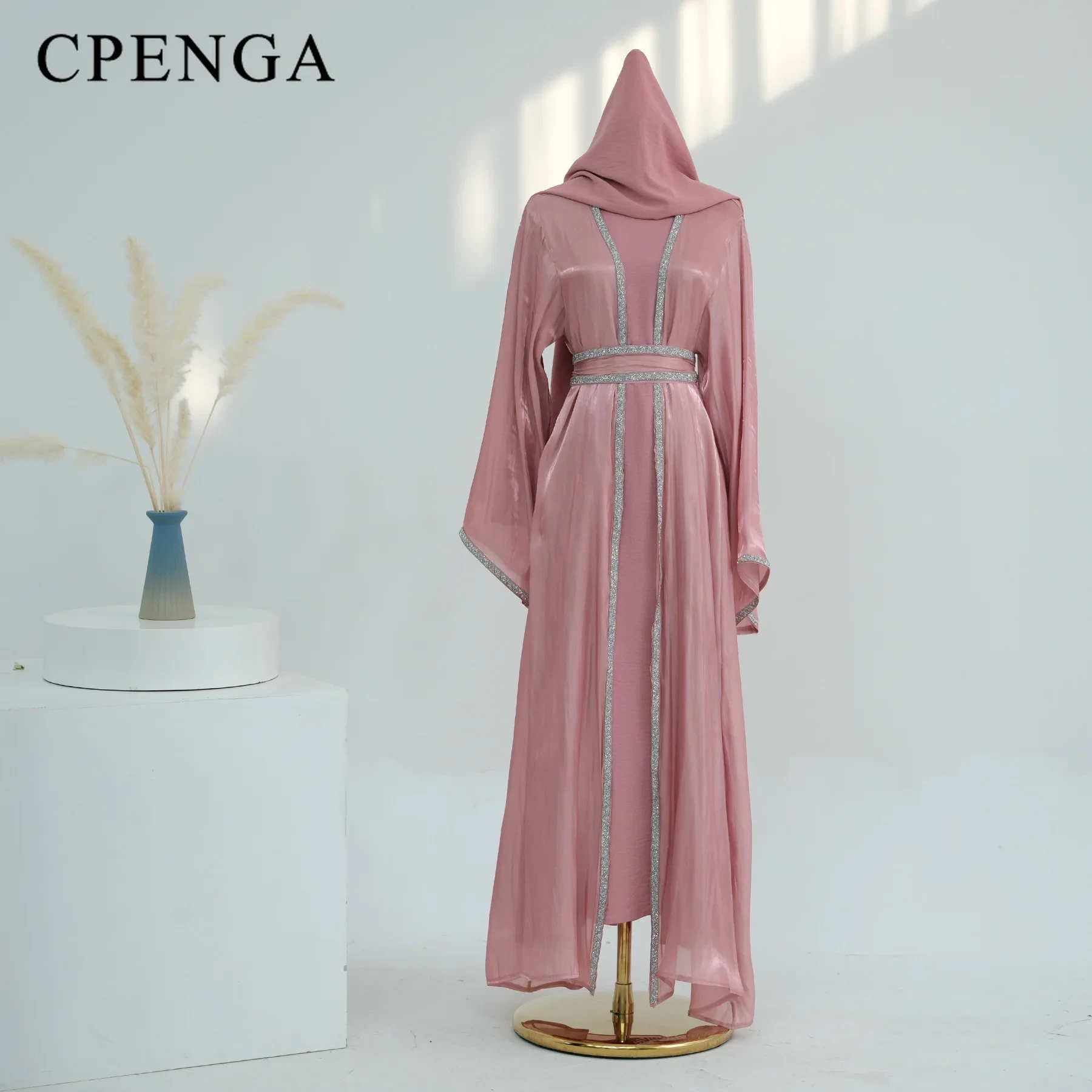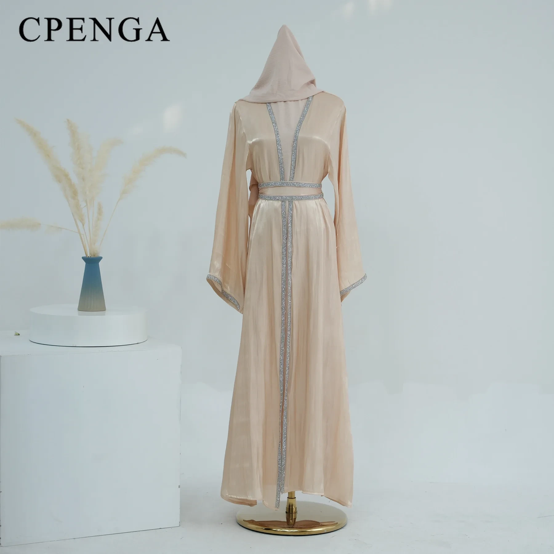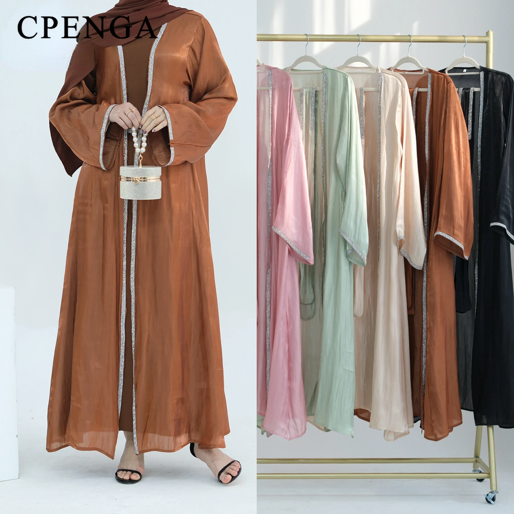 The coat is great quality Silky shiny fabric,like organza , a little see through. It's very light.